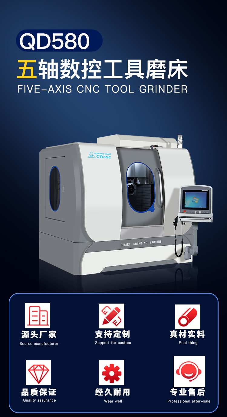 QD580五轴数控工具磨床是一款性能优良的刀具磨削中心,适用于生产或修磨铣削类刀具、钻削类刀具、成形刀具等。